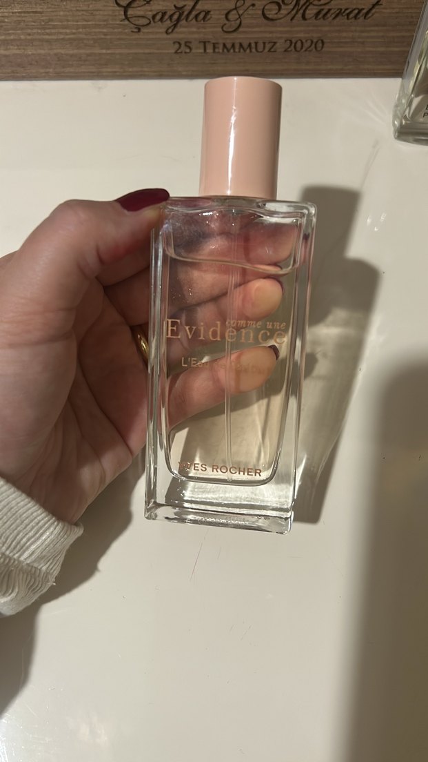 Yves Rocher Evidence kadın parfümü, şeffaf dikdörtgen şişede ve yumuşak pembe kapaklıdır. Zarif ve hafif bir koku sunar. Hediye geldi 1 fıs kokusuna bakmak için sıktım ihtiyaç fazlası olduğundan satıyorum.