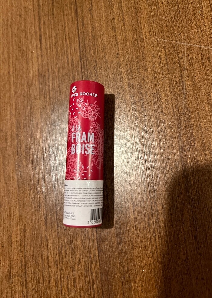 Muhteşem frambuazın aromasını gün boyu dudağınızda hissedin. Frambuaz Dudak Balsamı bitkisel içeriğindeki Karite yağı ve Frambuaz ile dudaklarınızı çatlamalara karşı korur, nemlendirir, yatıştırır ve besler. Zengin ve kolay eriyen dokusuyla kullanım keyfi sunan balsam, aynı zamanda dudaklarınıza hafif bir renk veren güzellik verir. Yves Rocher Frambuaz Dudak Balsamı, orman meyvesi frambuazın tazeleyici tadıyla beraber dudaklarınızın sağlıklı görünmesini sağlar. SKT ; 12.2025