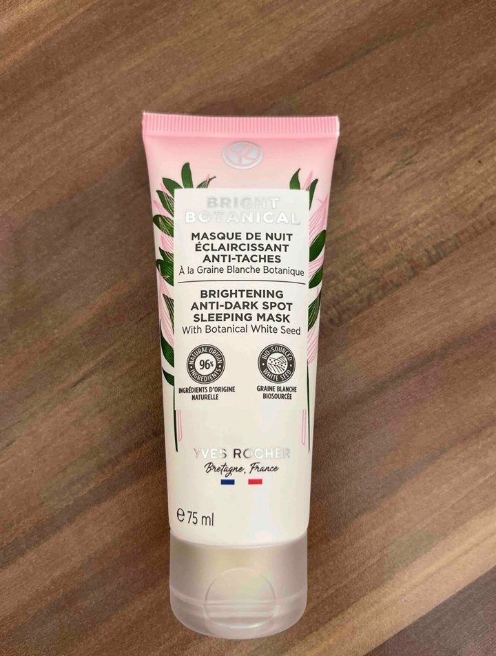 Yves Rocher 75 ml gece maskesi, botanik beyaz tohum özlü formülüyle saçları aydınlatır ve koyu lekeleri azaltır. %96 doğal içerik içerir.