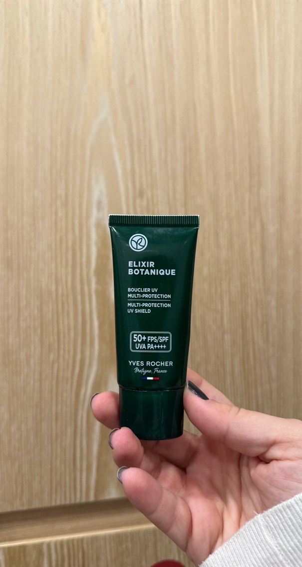 Yves Rocher Elixir Botanique çoklu koruma sağlayan, SPF 50+ ve UVA PA+++ içeren güneş kremi. Yarısı dolu.