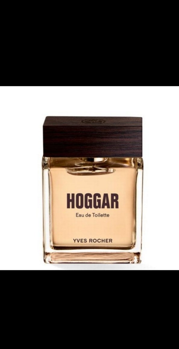 Yves Rocher Hoggar Eau de Toilette, minimalist ve çağdaş tasarıma sahip, parlak bej tonunda ve ahşap kapaklı erkek parfümü.