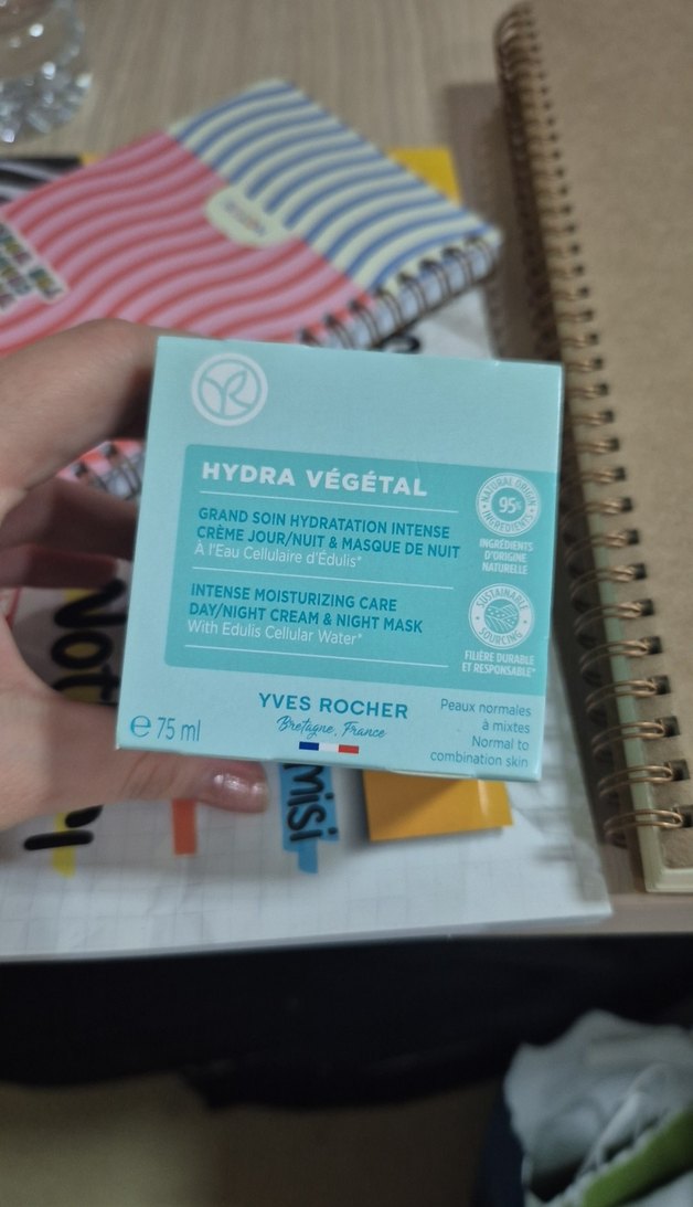Yves Rocher Hydra Végétal yoğun nemlendirici gündüz ve gece kremi, hücresel su ile. Normal ve karma ciltler için gece maskesi dahil.