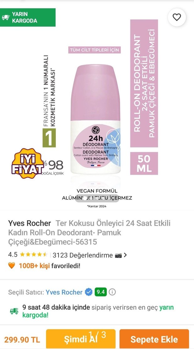 Yves Rocher Kadın Roll-On Deodorant 50 ml