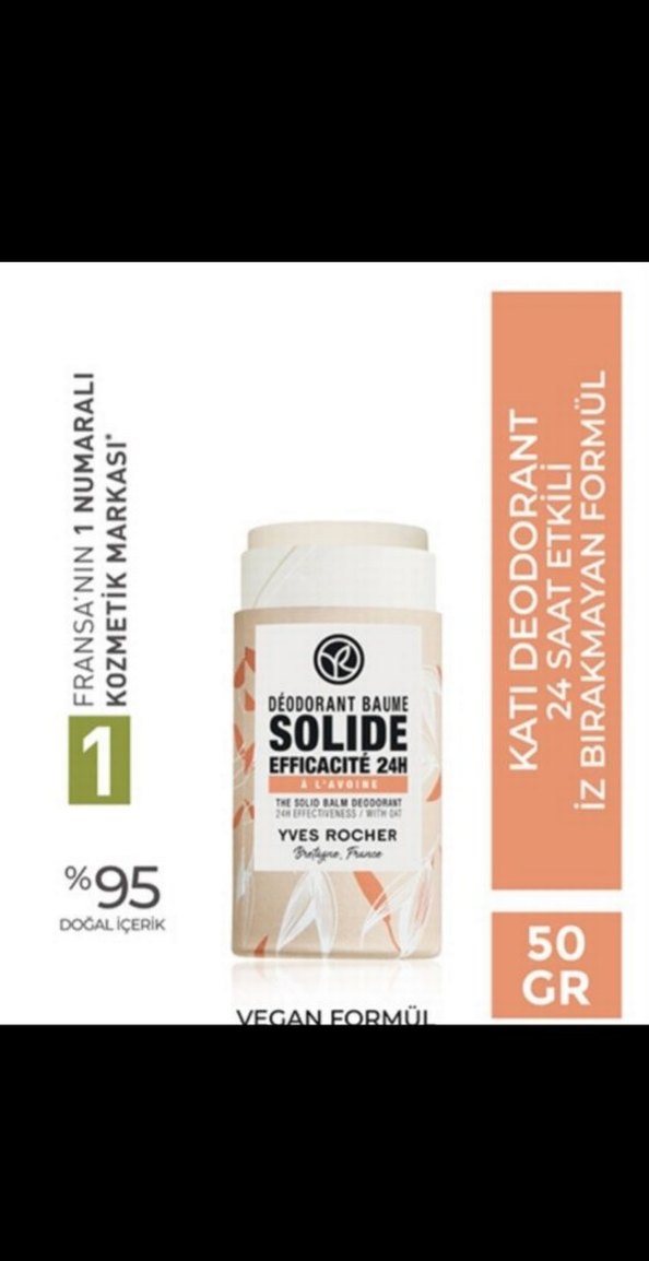 Yves Rocher katı deodorant, %95 doğal içerik ve vegan formülü ile 24 saat etkili koruma sağlar, iz bırakmaz.