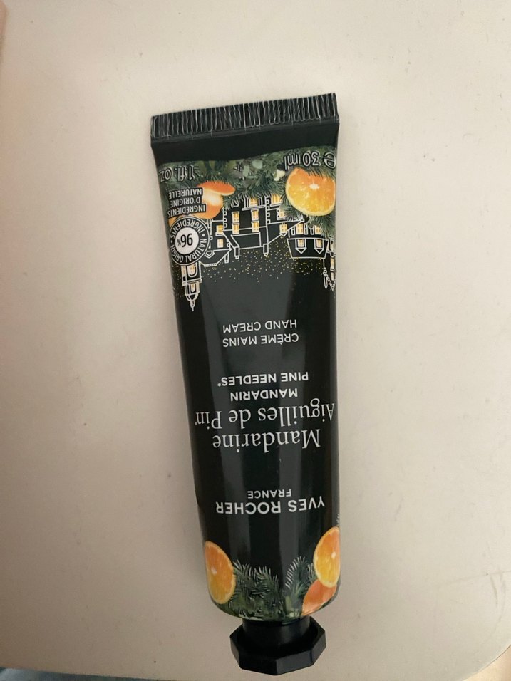 Yves Rocher mandalina ve çam kokulu el kremi, 30 ml tüpte. %96 doğal içerik ile elleri yumuşak ve besler.