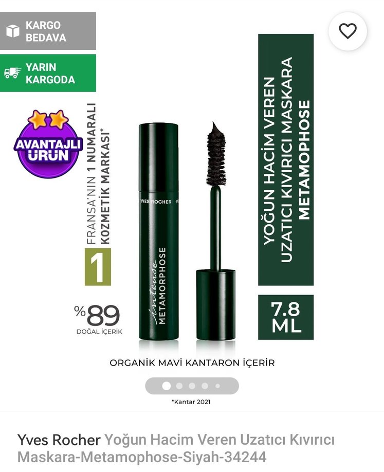 Yves Rocher Metamorphose siyah maskara, yoğun hacim ve kıvırıcı etkisiyle kirpikleri uzatır. Organik mavi kantaron içerir, 7.8 ml. Fiyatı normalde 720 tl.