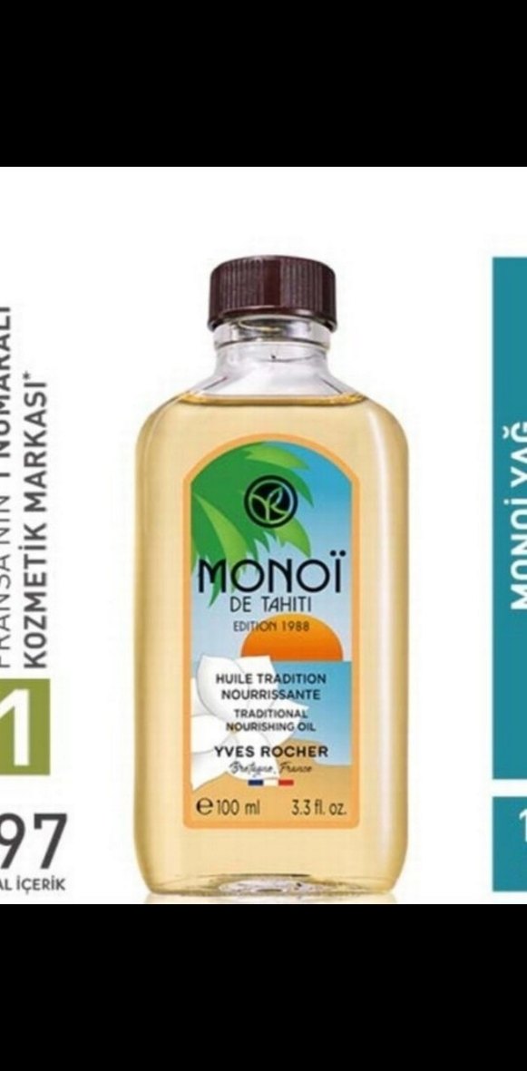 Yves Rocher Monoi De Tahiti geleneksel besleyici yağ, 100ml şişede. Cilde derin besleyici bakım sağlar.