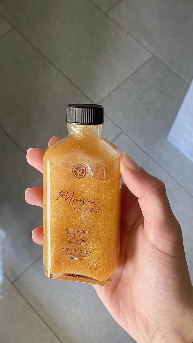 Yves Rocher Monoi vücut losyonu, ışıltılı dokusuyla derinlemesine nem sağlar ve cilde parlaklık verir.