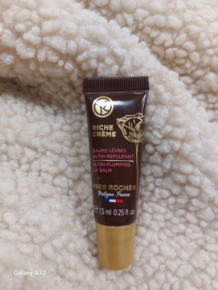 Yves Rocher Nutri-Plumping dudak balmı, besleyici ve dolgunlaştırıcı bakım sunar. Parlak bej tüpte, 7,5 ml.