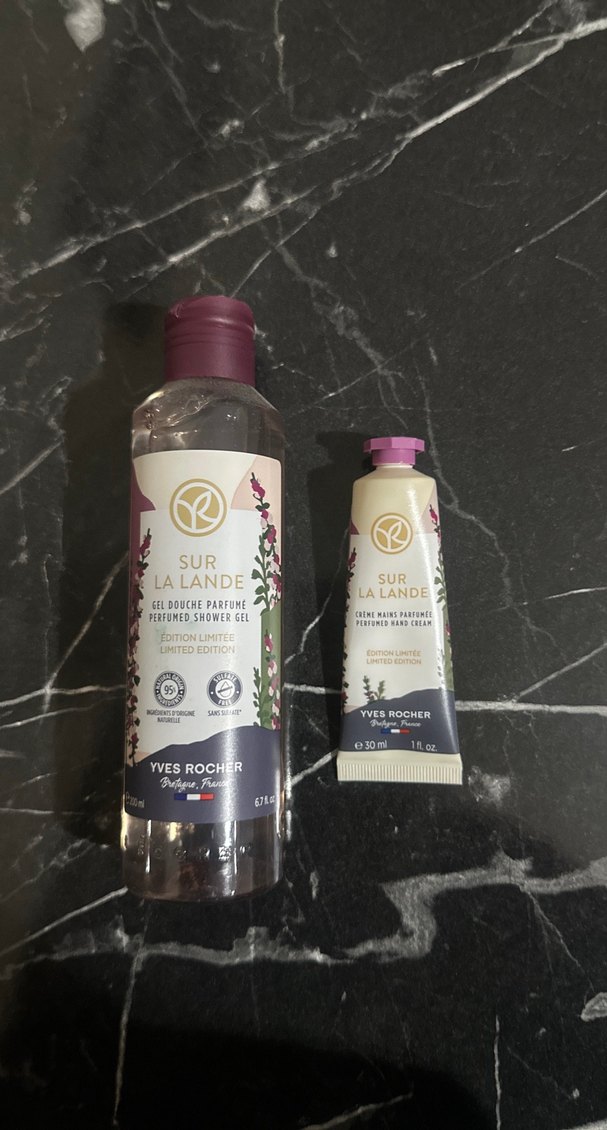 Yves Rocher markalı, çiçeksi kokulu sınırlı sayıda parfümlü duş jeli (200 ml) ve el kremi (30 ml) seti.