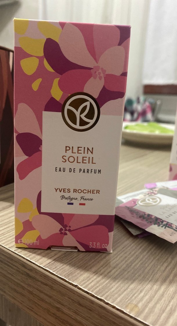Yves Rocher Plein Soleil Eau de Parfum, 100 ml, çiçek desenli ambalajda uzun süre kalıcı kadın parfümü.