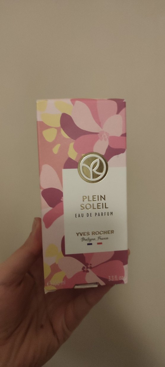 Yves Rocher Plein Soleil Eau de Parfum, renkli çiçek desenli kutusunda, canlı ve zarif bir çiçeksi koku sunar.