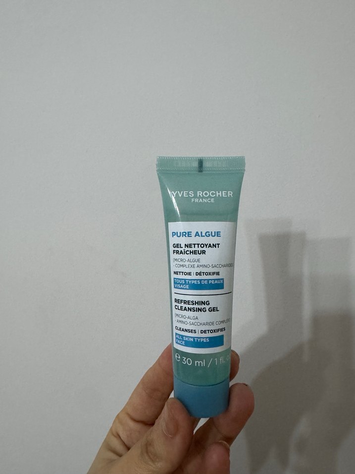 Yves Rocher Pure Algue ferahlatıcı temizleme jeli, tüm cilt tipleri için nazikçe temizler ve detoks etkisi sağlar. 30 ml tüpte, yüz kullanımı için uygundur. #cilt #bakım #yüz #temizleme