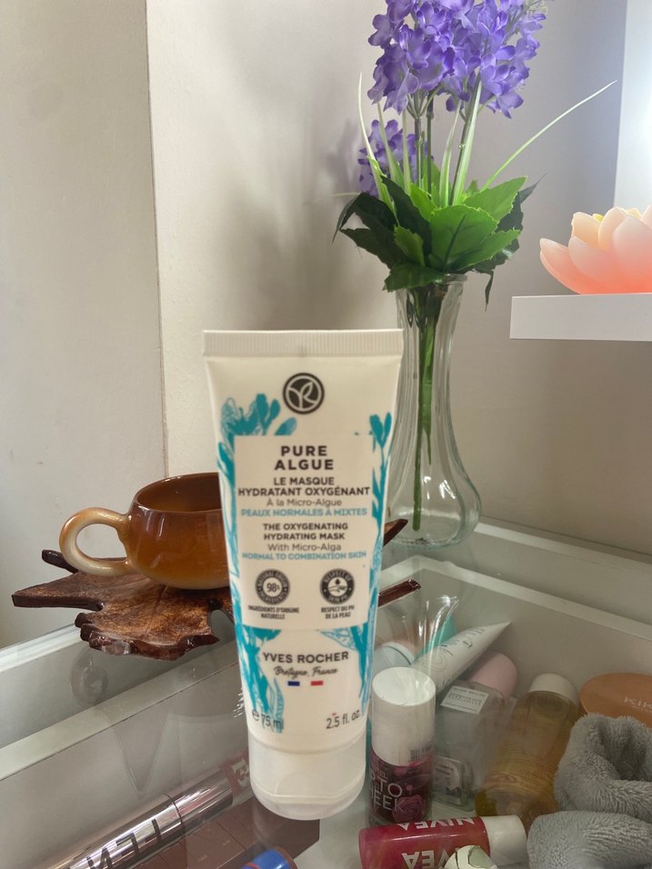 Yves Rocher Pure Algue Yüz maskesi, mikro-alglerle yüzü nemlendirir ve oksijenlendirir, parlaklık kazandırır. Hiç kullanmadım ama kutusu yok kokusu için açmıp atmıştım.