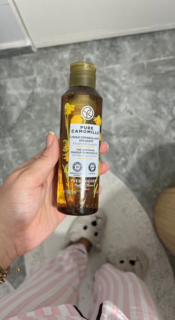 Yves Rocher Pure Chamomile makyaj temizleyici yağı, yabani papatya özü ile cildi yatıştırır ve makyajı nazikçe çıkarır.