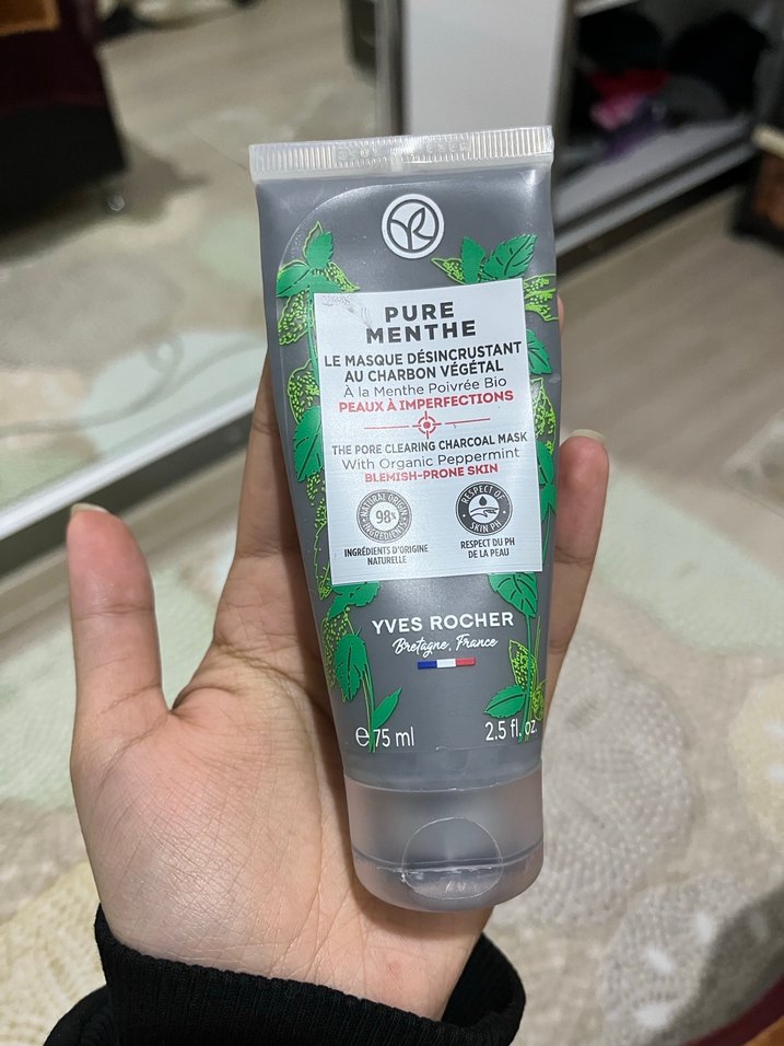 Yves Rocher Pure Menthe gözenek temizleyici bitkisel kömür maskesi, sivilceli cildi arındırır ve tazeler yüzde 75 dolu