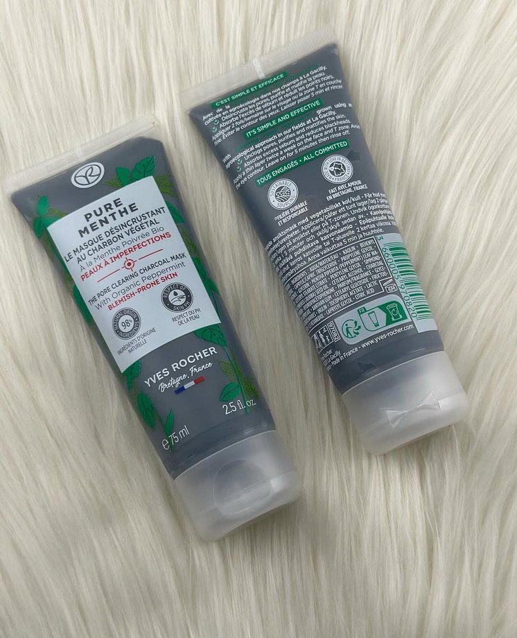 Yves Rocher Pure Menthe kömürlü maske, cildi nazikçe temizler ve ölü deriyi arındırır, fazla yağı dengeler. Doğal içeriklerle formüle edilmiştir.