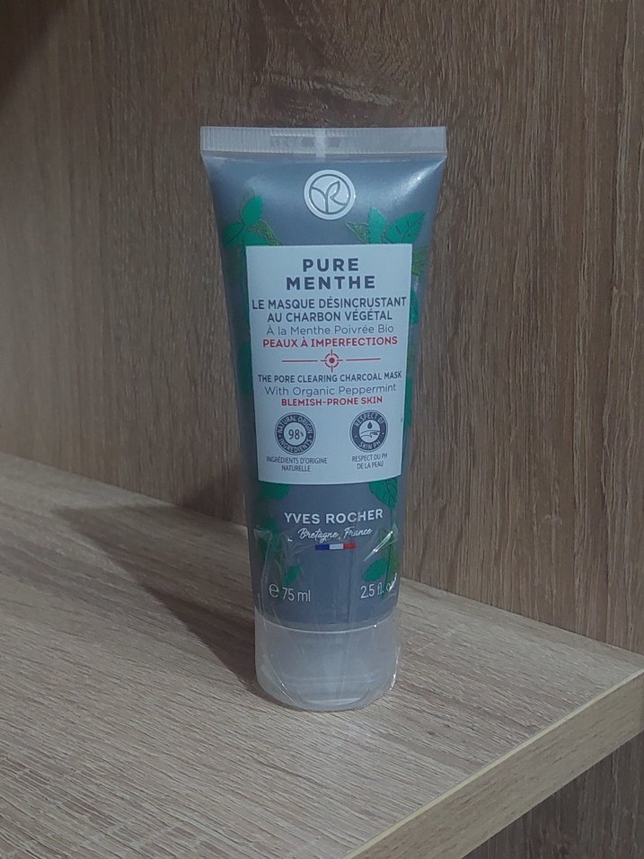 Yves Rocher Pure Menthe yüz maskesi, aktif kömür ve organik nane içerir. Sivilceye meyilli ciltler için gözenekleri temizlemeye yardımcı olur.