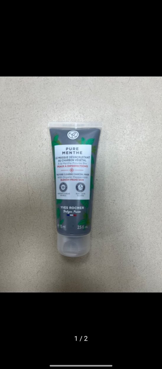 Yves Rocher Pure Menthe yüz maskesi, bitkisel kömür içerir ve karma ile sivilceye meyilli cildi arındırır. 75 ml tüpte sunulur. ♀️