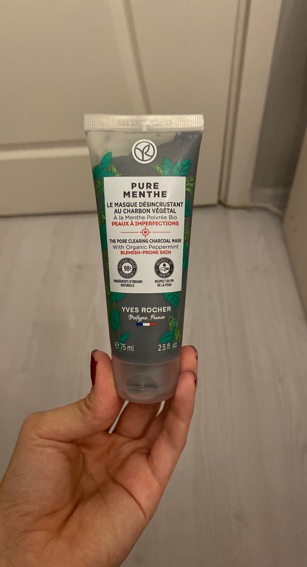 Yves Rocher Pure Menthe organik nane ve bitkisel kömür içerir, lekeli ciltleri temizler ve yatıştırır. %96 doğal içerik barındırır. Çok güzel bir maske herkes övüyor pahalıya almıştım uyuna koydum