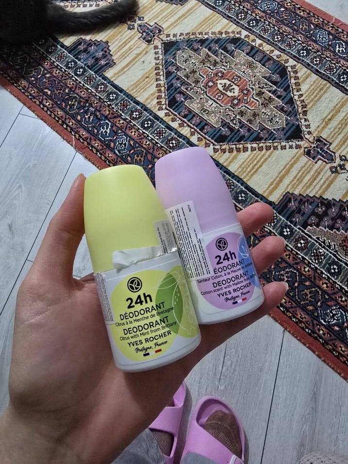 56315 - Roll-on Deodorant - Pamuk Çiçeği & Ebegümeci 57136 - Roll-on Deodorant - Organik Nane ve Limon Yves Rocher Roll on biri açılmamış paket diğerinin de yarısından fazlası duruyor