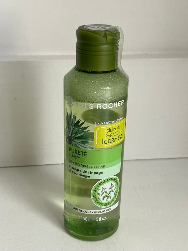 Yves Rocher markasına ait, yağlı saçlar için arındırıcı sirke. Silikon ve paraben içermez, 150 ml. Cok fazla ürünüm olduğu için satışta, görüldüğü üzere hiç kullanılmadı