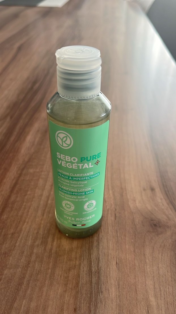 Yves Rocher Sebo Pure Végétal, bitkisel içerikli ve salisilik asitli, leke eğilimli ciltler için temizleyici losyon.
