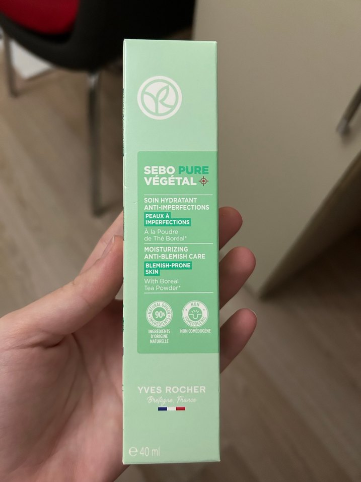 Yves Rocher Sebo Pure krem boreal çay tozu ile nemlendirici ve sivilce karşıtı bakım sağlar, sivilceli ciltler için uygundur.