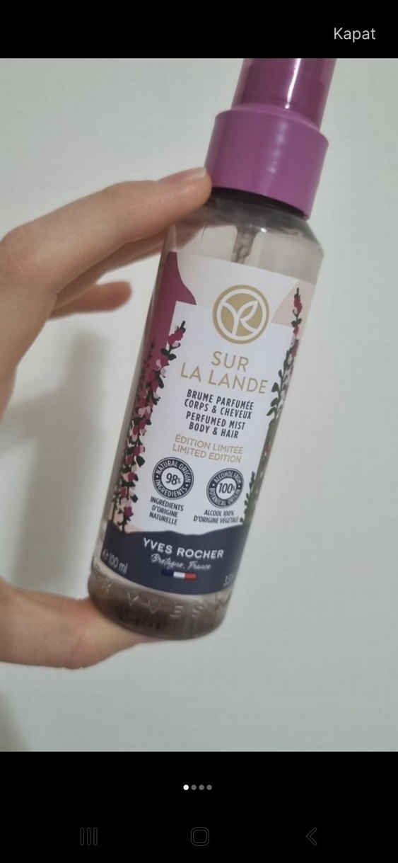 Yves Rocher Sur La Lande, %98 doğal içerikli ve alkolsüz, vücut ve saç için parfümlü sprey. Sınırlı sayıda üretilmiştir.