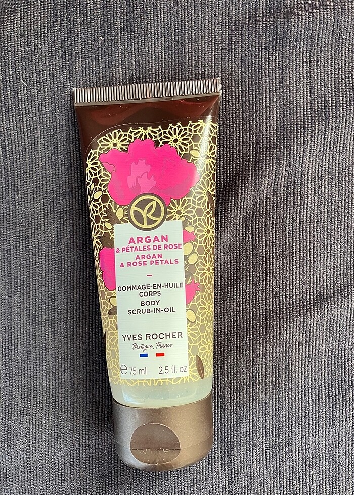 YVES ROCHER Argan&Gül vücut pelingi olup bitkisel içeriklidir. 75 ML dir. Hiç kullanılmamıştır.