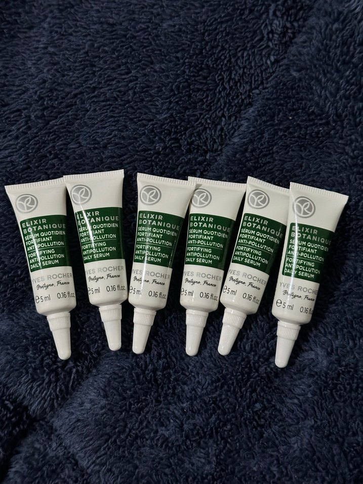 Yves Rocher Elixir Botanique günlük kullanım için erkekler için anti-pollution cilt bakım serumu seti. Her tüp 5 ml serum içerir.