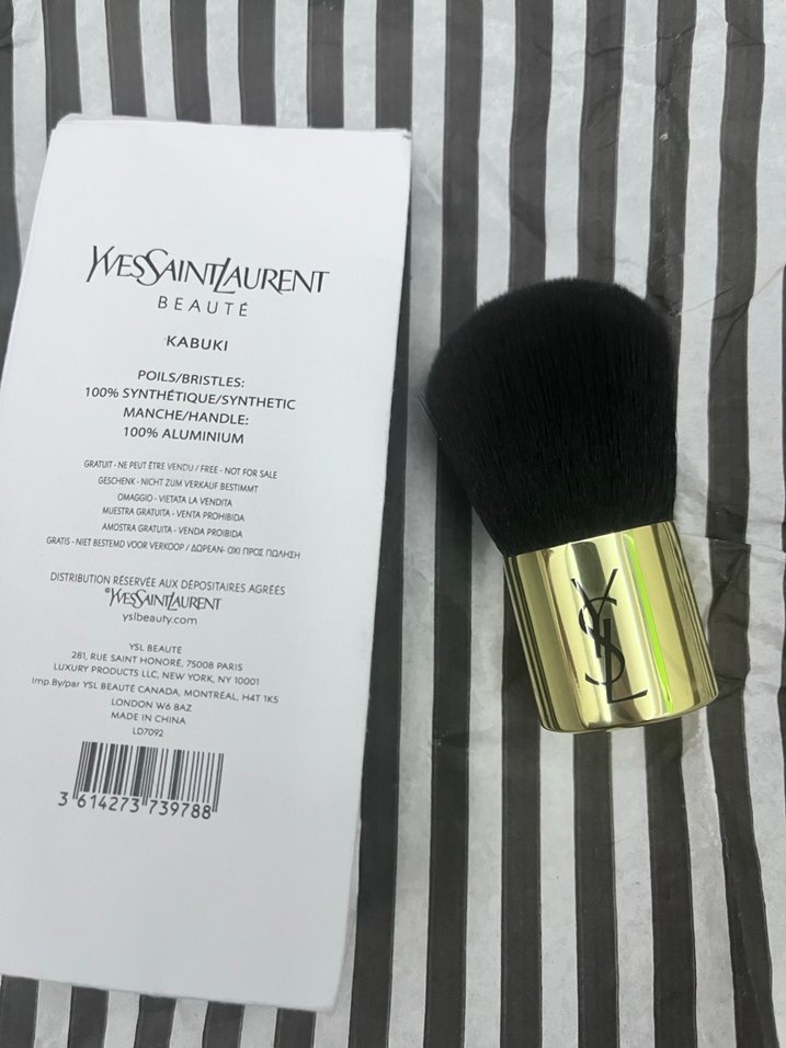 Yves Saint Laurent Kabuki allık fırçası, sentetik kıllara ve parlak altın renkli alüminyum sap kısmına sahiptir. Hiç kullanılmadı. Sephoradan yaptığım belli bir miktar alısverısın yanında verilmişti. Çok fazla fırçam var o sebeple satıyorum.