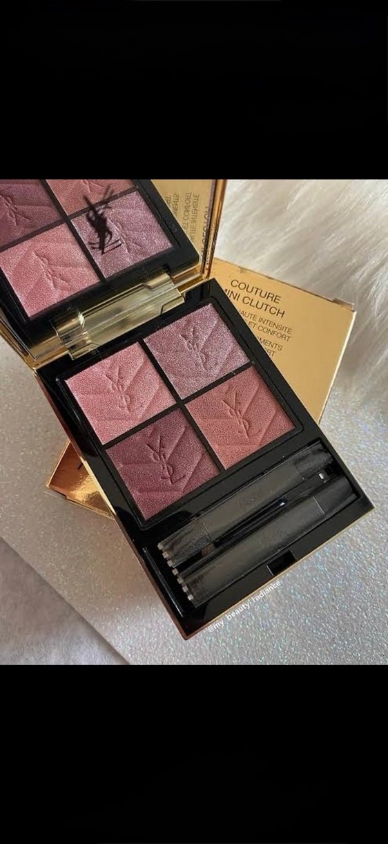 Yves Saint Laurent Couture Mini Clutch paleti, yumuşak dokulu, koyu pembe tonlarında dört far içerir. İki aplikatör ve aynalı şık kompakt ile sunulur.