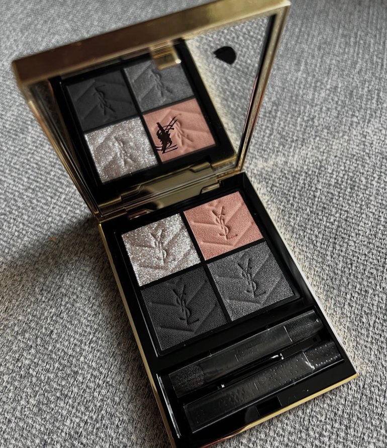 Yves Saint Laurent göz farı paleti, koyu gri, açık gri ve yumuşak şeftali tonlarından oluşan dört renkten oluşur. Aynalı ve çift aplikatörlü. 700 numaradır. Almanyadan gelmiştir
