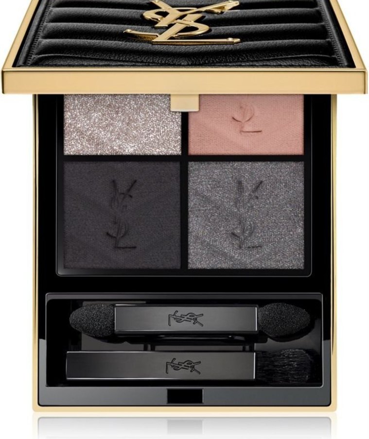 Yves Saint Laurent markalı, mat ve ışıltılı gri tonlarda dört göz farı ve iki aplikatör içeren palet. Şık göz makyajları için uygundur.