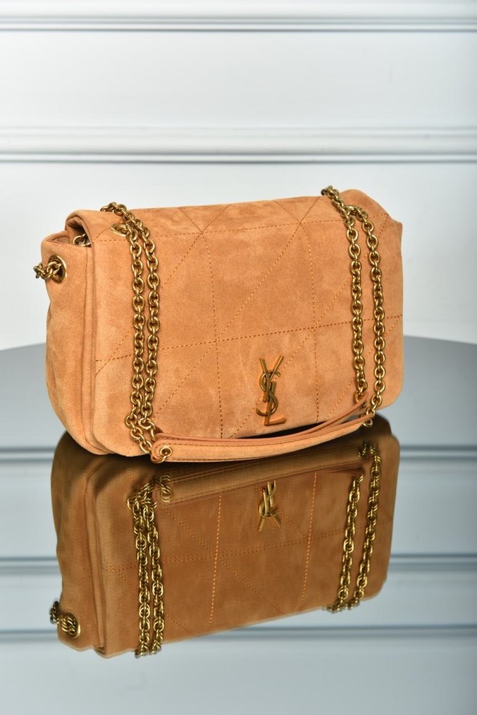 Bej süet malzemeden yapılmış, parlak zincir detaylı kadın çantası. Düz ve desensiz yüzeye sahip, trend sokak modasına uygun. YVES SAINT LAURENT - Jamie 4.3 in Suede İthal Ürün Ölçüler: 25 × 17 × 9 cm