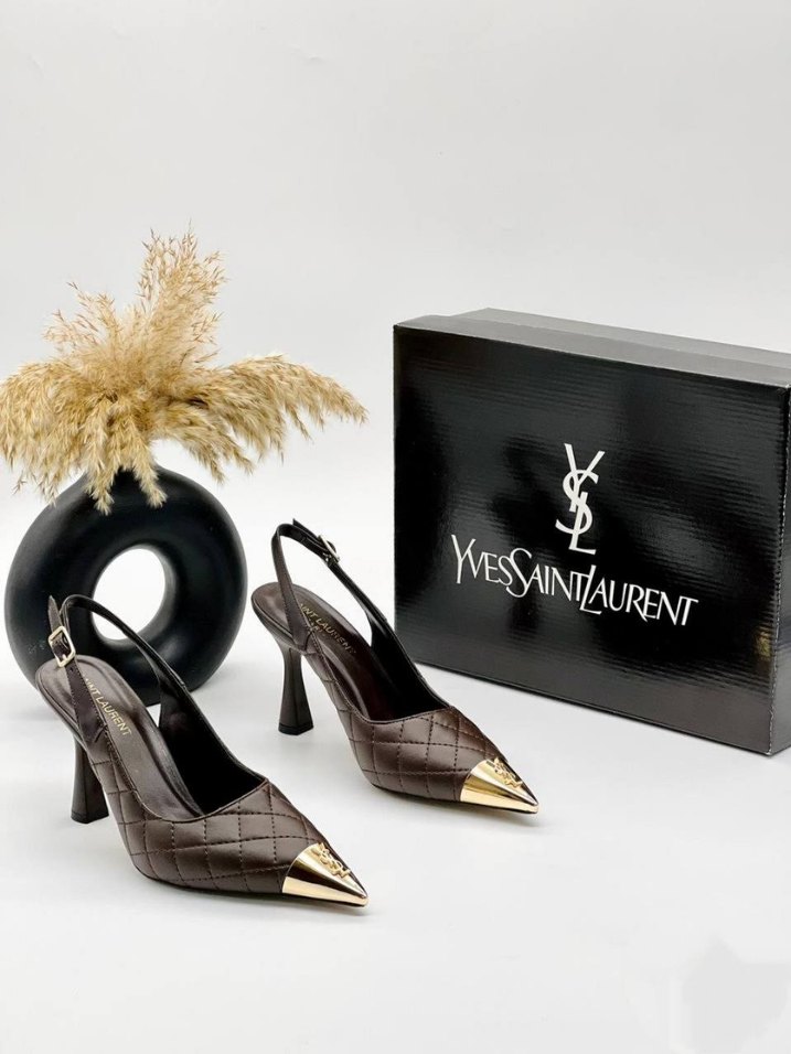 Yves Saint Laurent kahverengi deri stilettolar, desenli yüzey, tokalı bantlar ve altın uç detaylarıyla modern klasik ofis stiline uygun. Yeni sezon Ysl Luxury kalite Orjinal kutude 36-41arasi stokta ✅