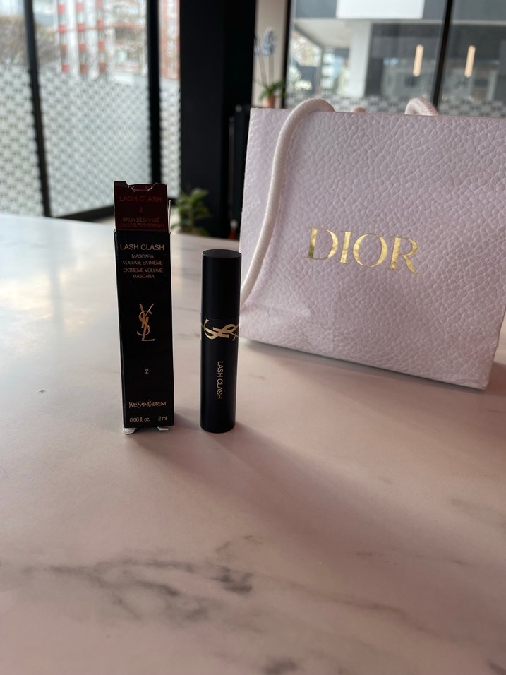 Yves Saint Laurent maskara, parlak altın logolu siyah ambalajda. Orijinal sıfır ürün