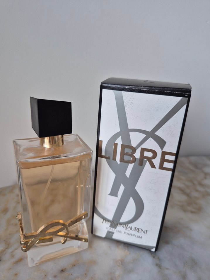 Yves Saint Laurent Libre kadın parfümü, şeffaf şişede altın YSL logosu ve siyah kapak ile şık bir koku sunar.