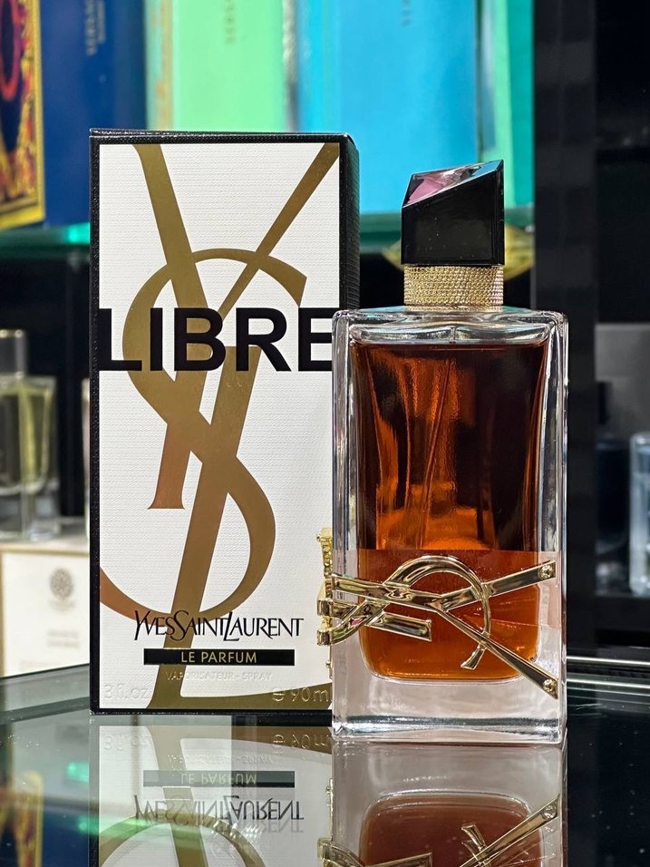 Yves Saint Laurent Libre kadın parfümü, altın YSL logosu ve koyu amber renkli şişesiyle dikkat çekiyor. Beyaz, altın ve siyah detaylı kutuda, 90 ml.