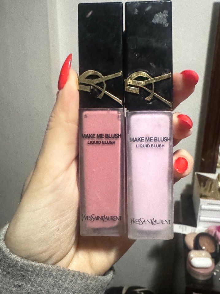 Yves Saint Laurent imzalı likit allık, pastel pembe tonlarında, doğal bir görünüm için yumuşak ve kolay karışan formüle sahip. Şık ambalajda YSL logosu bulunur.