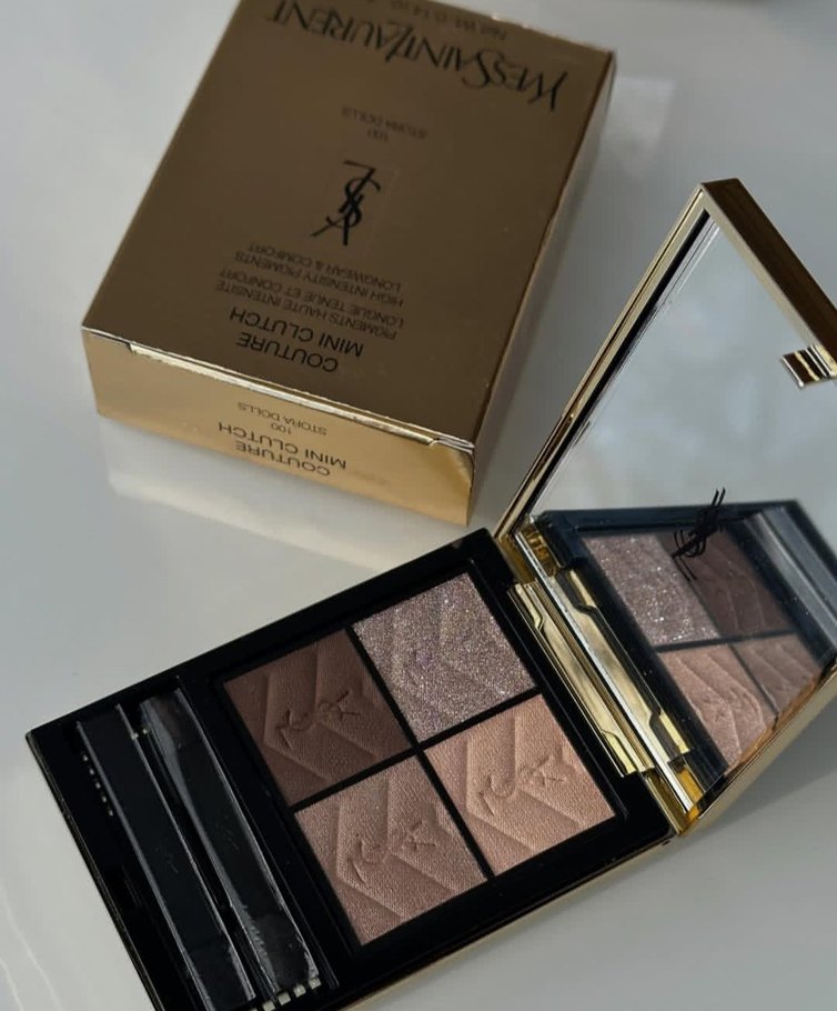 Yves Saint Laurent mini göz farı paleti, koyu ve bej tonlarında dört renkten oluşur ve dahili aynaya sahiptir. ✨