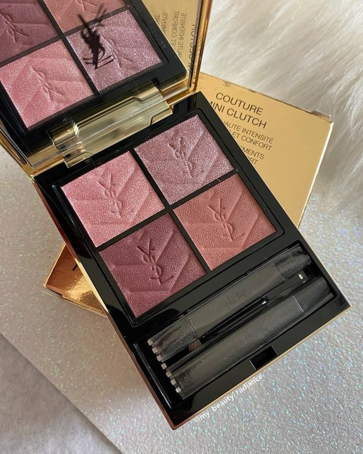 Yves Saint Laurent markasının dört farklı pembe tonunda, yumuşak dokulu göz farı paleti. Aynası ve çift aplikatörü ile pratik kullanım sağlar.