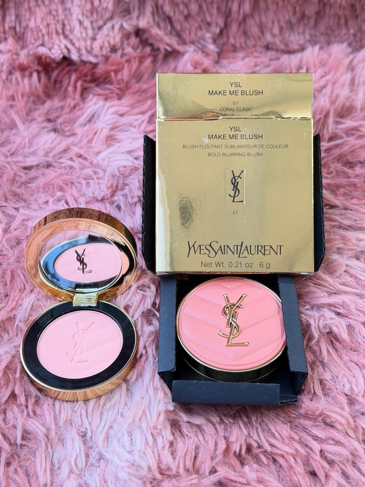 Yves Saint Laurent'in parlak pembe tonunda Make Me Blush allığı, canlı renk ve pürüzsüz doku sunar. Kompakt kutuda ayna ve şık altın detaylar bulunur.