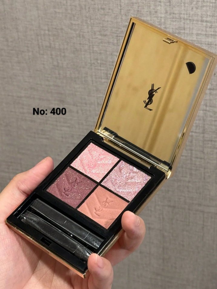 Yves Saint Laurent'in parlak pembe tonlardan oluşan far paleti, altın renkli kutuda ve aplikatörlü olarak sunuluyor. No: 400 tonu.