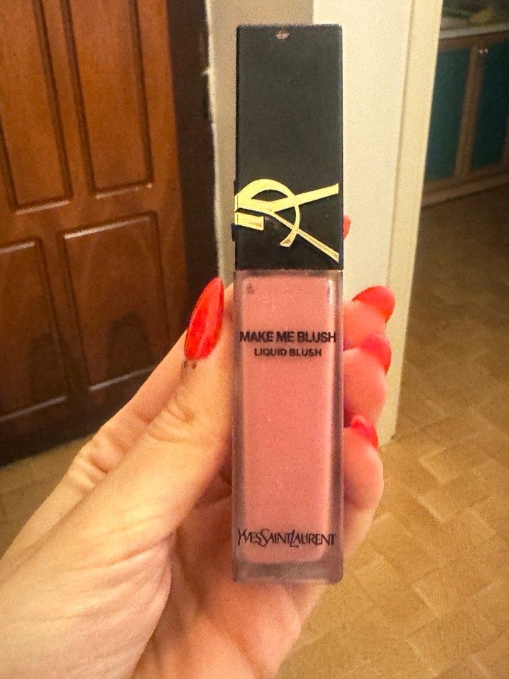 Yves Saint Laurent Make Me Blush sıvı allık, parlak bej tonunda, cilde doğal ve ışıltılı bir görünüm kazandırır.