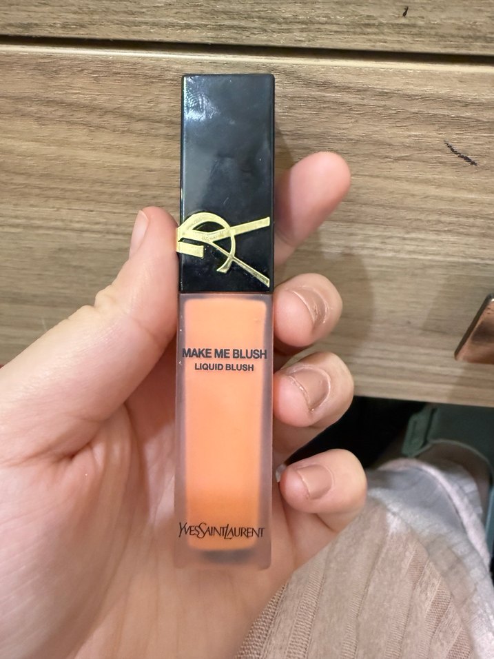 Yves Saint Laurent marka, şeftali renkte sıvı allık. Yumuşak ve doğal bir görünüm sağlar.