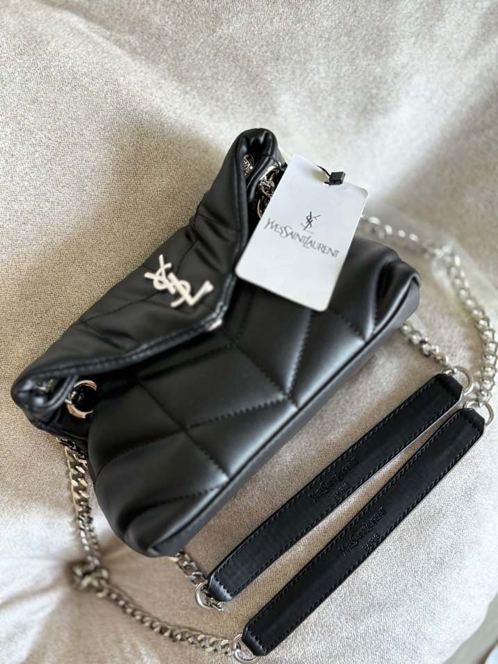 Yves Saint Laurent markalı siyah yılan desenli deri çanta, fermuarlı bölmesi ve Parisli biker tarzıyla dikkat çekiyor.