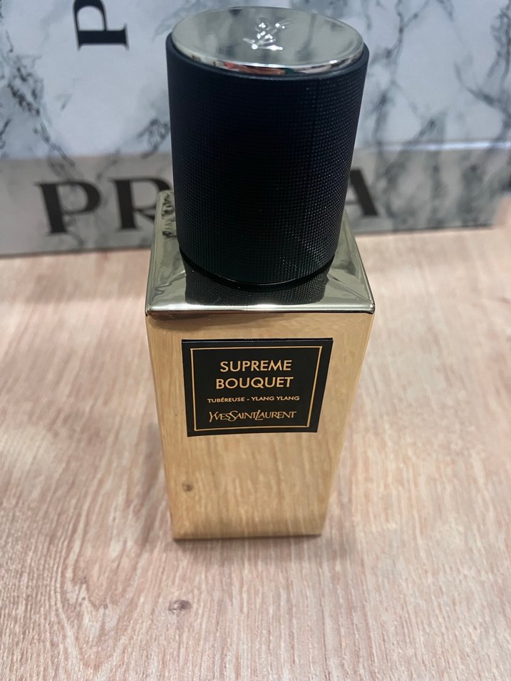 Yves Saint Laurent Supreme Bouquet kadın parfümü, şık altın renkli şişede çiçeksi ve sofistike bir koku sunar.