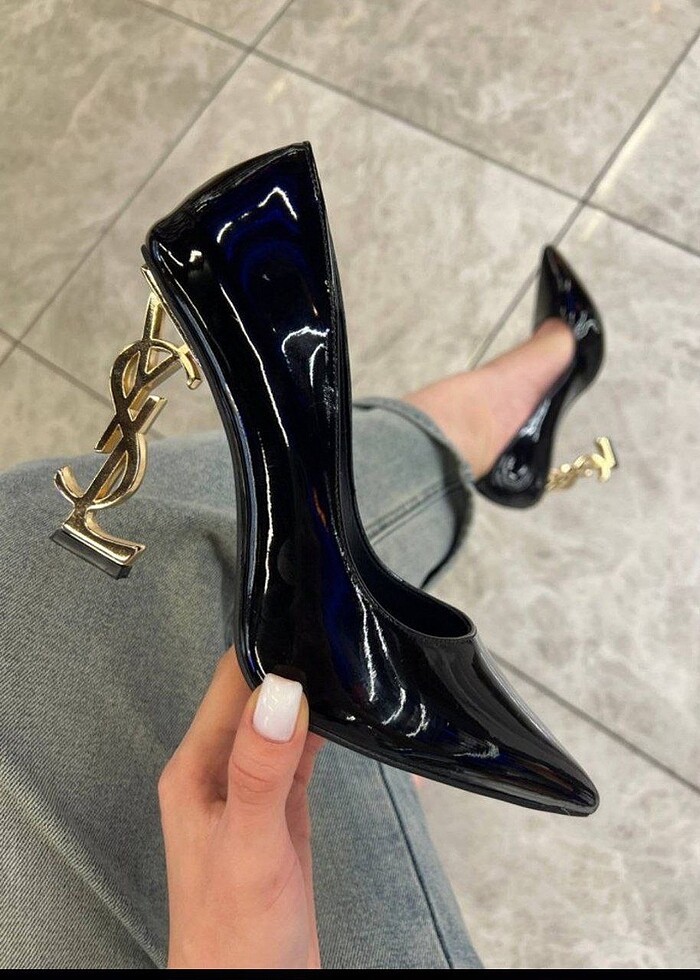 Yves St Laurent Ysl kadın ayakkabısı Tam kalıp Rugan kumaş Özel ithal kararmaz baskılı ysl topuk Topuk Punto 9 cm Şık ve modern Mevcut numaralar 36-37-38-39-40